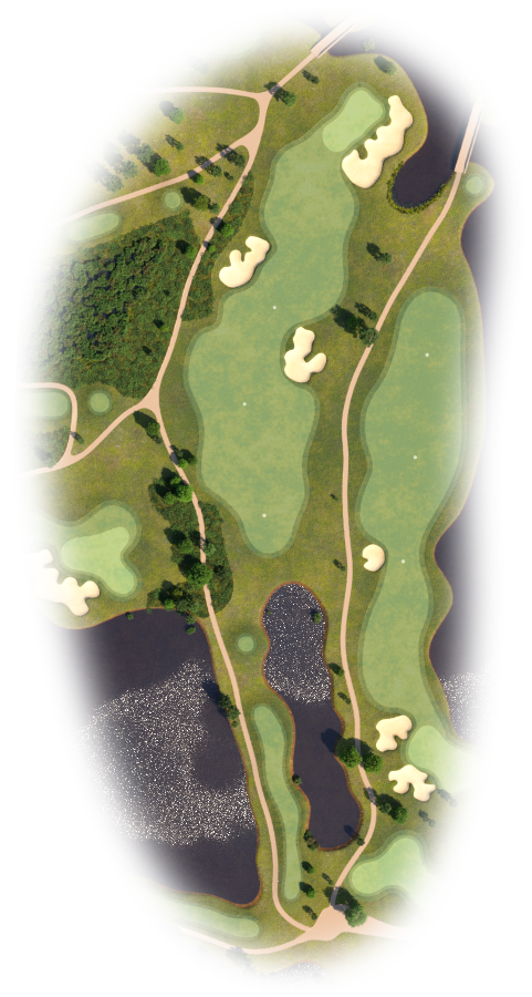 Use the centre tree as your target line. The dog-leg par 4 has lots of space on the fairway to the left of the tree. It is possible carry the fairway bunker on the right for a shorter approach, but be cautious of the water. The green is well protected by bunkers but there is a lot of green to work with.