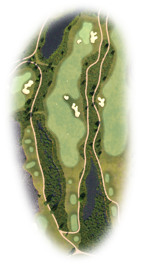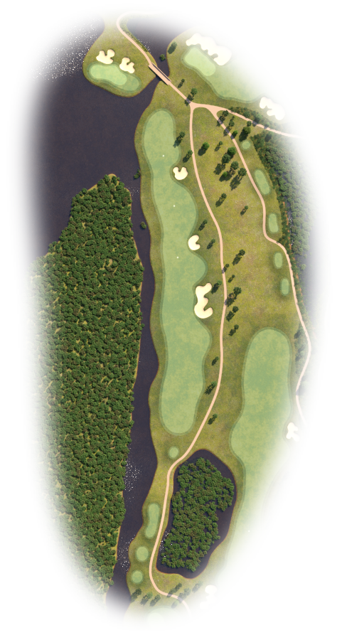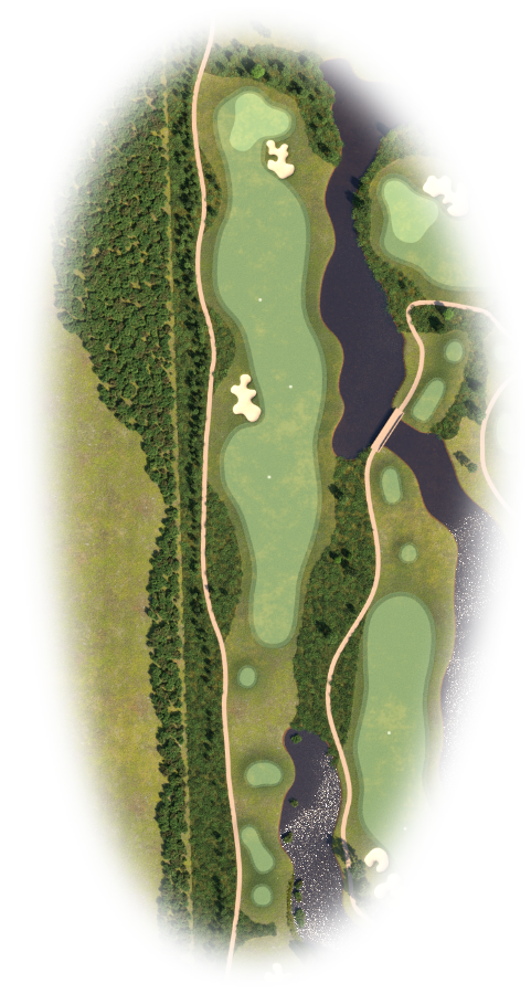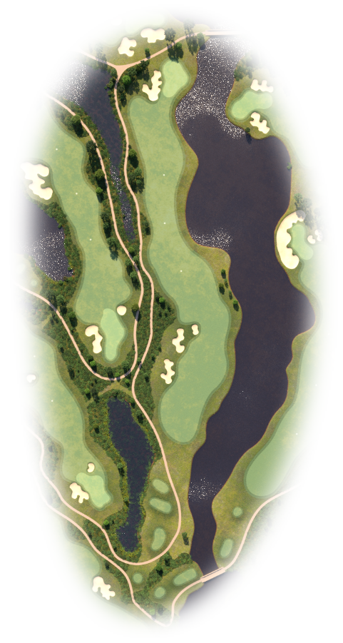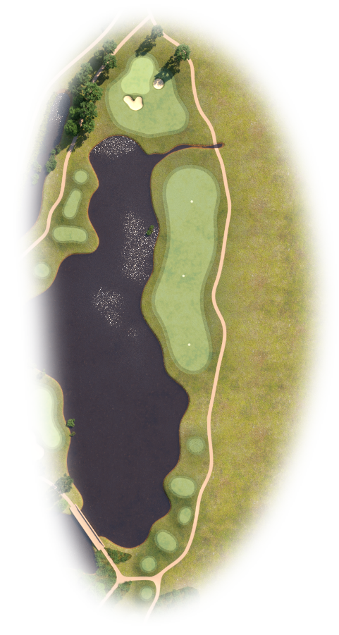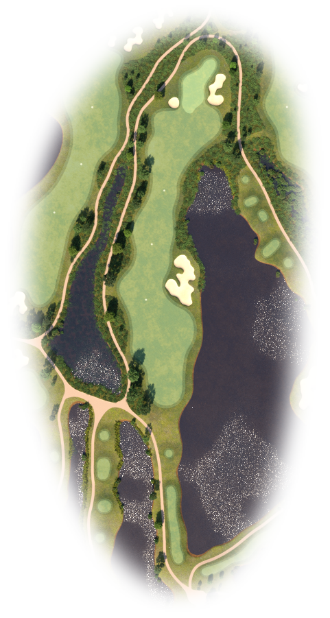 One of the tougher holes on the course. This long par 4 has water all the way on the right. Aim to the left edge of the bunker. On the approach, aim to the right of the green in a cross-wind. This hole has a very large green to work with.