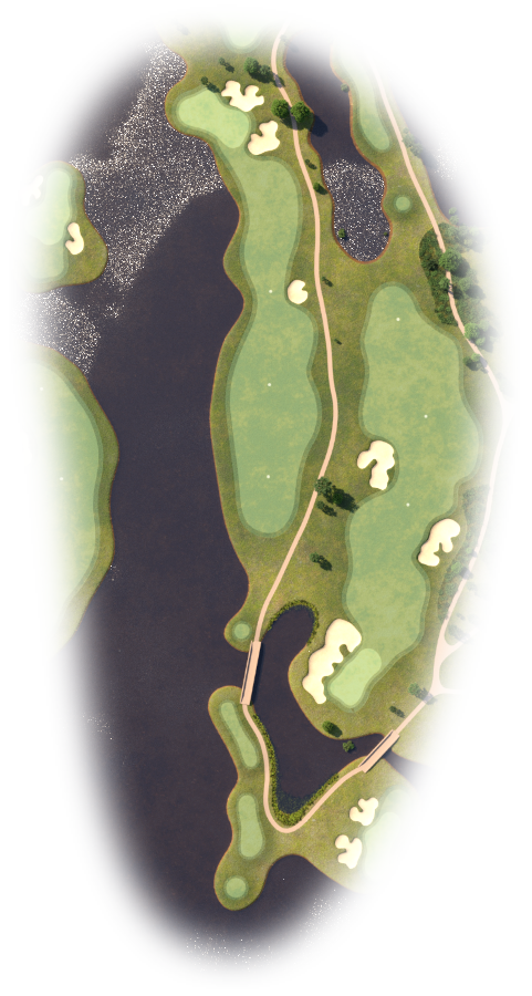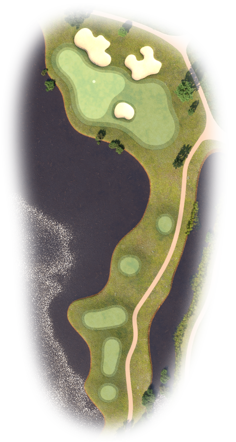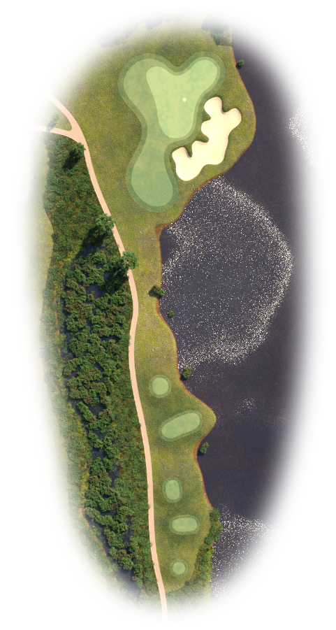 This par 4 can be daunting as you stand on the tee with water all the way on the left and right of the fairway. Don’t let this intimidate you. Play conservative and the hole becomes much more open and easy. The small green is also well protected by bunkers but still one of the most fun holes to play on the course.