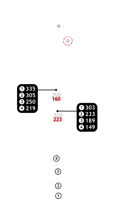 Buttons toggle between distance guide and media. See hole layout for result. If available, click orange icons to view media. All distances measured in yards from middle of Tee.