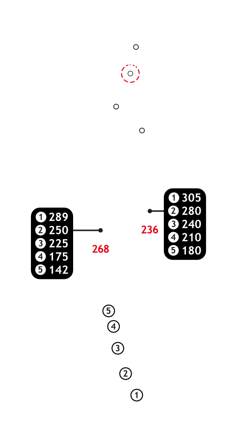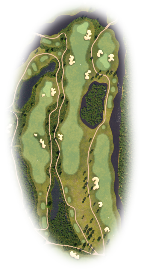 A straight par 3 with a big bunker protecting the front of the green. There is a lot of space to the left of the green to play safe.