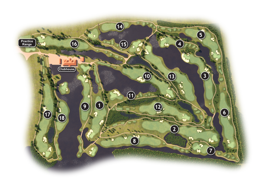 You have now reached the furthest part of the course and the longest par 3 with water on the left and 2 bunkers protecting the left and right side of the green. This is a challenging green with big slopes but al lot of room if you do not reach the green off the tee.